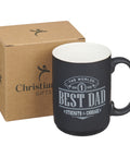 The mug itself is as strong as a father's love with a wide mouth and easily graspable handle, and at a generous 14 fluid ounce capacity, it can quench any man's thirst. The mug even comes complete with a classy box for easy gift giving. The World's Best Dad Ceramic Coffee Mug is part of the World's Best Dad Collection designed to celebrate the fathers in your life. This collection includes a key ring in a gift tin, a 2-piece gift set with a mug and key ring, a genuine leather wallet, a gift bag, a faux leather journal, and a stainless steel water bottle.Consider adding the World's Best Dad Ceramic Coffee Mug to a gift basket for new parents or as part of a parents' blessing gift at a baby baptism or dedication. This mug is not only an excellent gift for new dads but is also ideal for seasoned fathers. Pair the World's Best Dad Ceramic Coffee Mug with the genuine leather wallet from the World's Best Dad Collection for a Father's Day gift your dad will treasure for years to come.