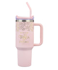Take the gift of faith and inspiration on your daily commute when you use the Things Are Possible Blush 40 oz Stainless Steel Travel Tumbler for hydration on the go. The tumbler's elegant floral design and timeless message of encouragement will inspire your hydration goals.