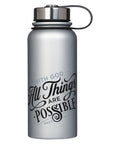 Things Are Possible Silver Stainless Steel Water Bottle - Matthew 19:26