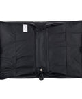 Silver metal hardware securely attaches the lay-flat handle to the spine, and a black faux leather zipper pull ensures the zipper closes smoothly. Topstitching along the edges of the design adds strength to a sturdy structure. A slip pocket on the back panel is useful for holding your church bulletin, notes, or verse cards, and two pen loops are included in the interior for keeping pens and highlighters within reach.