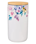 This beautiful ceramic jar is made of high-quality and durable ceramic with a gloss seal and a securely fitting bamboo lid. Soft-hued flowers in shades of pink, yellow and purple cascade down from the rim of the jar and draw your eyes to the sentiment that is presented in a multi-font design