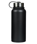This water bottle's durable design includes a stainless steel, double-walled interior that will vacuum-insulate cold and hot beverages and preserve their temperature for up to 24 hours. The twist-off cap is made of stainless steel and black plastic that will hide any smudges or fingerprints. Easily carry the bottle from place to place with the rubber wristlet attached to the cap, and never worry about leaks with the fitted silicone seal. As with all stainless steel water bottles, handwash the bottle to ensure lasting quality.