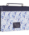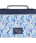 The Trust in the Lord Blue Botany Faux Leather Bible Cover is part of the Trust Blue Botany Collection that pairs Proverbs 3:5 with an elegant blue botanical pattern. This collection includes a faux leather Bible cover, a large insulated travel tumbler, a canvas tote, a faux leather checkbook wallet, and a faux leather bookmark.