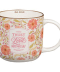 When your spirit feels weary and the day ahead seems long, make a cup of soothing coffee or tea in the Trust In The Lord Coral Cascade Ceramic Coffee Mug to experience a quiet moment of renewal.