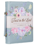 Trust in the Lord Pearlescent Pewter Floral Fashion Bible Cover - Proverbs 3:5