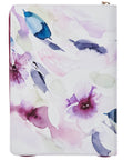 Pretty purple and teal watercolored flowers and leaves decorate the covers of the faux leather journal. The gold-foiled sentiment is set in a white frame with a gold-foiled border on the front cover.