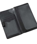 The interior has space for everything you need: three credit cards and one ID slot, a pen loop, and a plastic divider for duplicate checks.