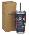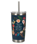 Trust Indigo Blue Floral Stainless Steel Travel Tumbler with Stainless Steel Straw - Proverbs 3:5