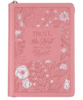 Trust With All Your Heart Pink Faux Leather Classic Journal with Zipper Closure - Proverbs 3:5-6