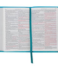 Surprise your fashion-forward aunt or cousin with the unique Turquoise Faux Leather Compact King James Version Bible for her birthday or keep it for yourself to express your individuality!