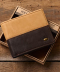Two-tone Dark Brown and Camel Tan Leather Wallet with Cross Badge