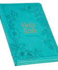 Vibrant Teal Faux Leather Large Print Thinline King James Version Bible with Zippered Closure and Thumb Index