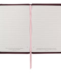The classic journal opens to a presentation page with space to record your name and the date you begin to fill its pages. Enjoy streamlined writing with 336 neatly lined pages containing a Scripture verse printed at the bottom. A conveniently attached ribbon to mark your place each time you reopen your journal.