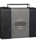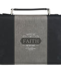 Walk by Faith Black and Gray Faux Leather Classic Bible Cover - 2 Corinthians 5:7
