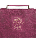 The Walk by Faith Ruby Red Faux Leather Fashion Bible Cover is your cue to take on life with the confidence that comes from knowing you serve an Almighty God, and carrying your Bible in a sturdy Bible case will remind you of this honor every time you unzip it to read from God's Word.