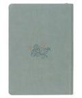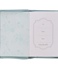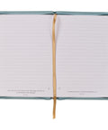 The smooth teal cover of the classic journal is heat-debossed with large floral swags accented with gold-foiled leaves, displayed in opposite corners. The sentiment is presented in a gold-foiled frame and features both heat-debossed and gold-foiled words.