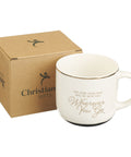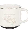 The Wherever You Go White Ceramic Coffee Mug will be your daily reminder that you are never alone... God promises to be with you whatever you do, so be strong and courageous.