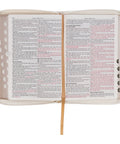 This exquisite White and Gold Faux Leather Large Print Thinline King James Version Bible with Zippered Closure and Thumb Index will become a treasured keepsake for a lady who values beauty and practicality. It is an ideal Mother's Day gift for an elegant mother or a birthday gift for a cherished aunt.