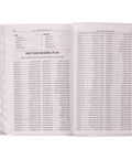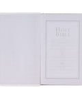 A presentation page in the front of the Bible is the perfect place to write an encouraging message to the new couple. Silver gilt-edged pages and an attached white satin ribbon page marker add elegance to an already exquisite design. The standard 9 pt. type in a double-column format, thumb index, reader-friendly subheadings, thematic Scripture verse finder, 8 full-color maps, and the words of Christ printed in red will assist them in their Bible study. A one-year Bible reading plan is included to keep the couple engaged in Bible reading. The Bible comes packaged in a full-color printed cardboard sleeve.