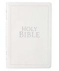 Celebrate the sacraments, rites, and ceremonies of the Church with the White Faux Leather Large Print Thinline King James Version Bible with Thumb Index! Whether you are celebrating a baptism, confirmation, church membership, first communion, christening, or wedding, the pure white KJV Bible will mark your rite of passage in a meaningful and memorable way.