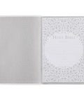 A presentation page that mimics the cover design is added to the front page of the Bible and is perfect to commemorate a special occasion or event. Silver gilt-edged pages and an attached white satin ribbon page marker elevate the elegant design. Black thumb indexing tabs with a silver-foiled print make finding the books of the Bible effortless and is an added luxury feature.