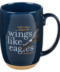 Wings Like Eagles Navy Blue Ceramic Coffee Mug with Exposed Clay Base - Isaiah 40:31