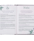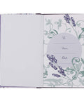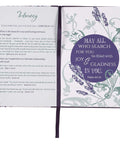The pages are gilt-edged in a coordinating purple. 128 two-color pages, adorned with purple lavender blooms and mossy green foliage, can be found inside the devotional. A coordinating purple ribbon marker is included to mark your page.