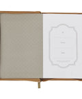 A smooth tan faux leather cover is gently mottled to resemble vintage suede leather. Two heat-debossed horizontal bands accented with tan topstitching stretch across the journal's bottom half. The heat-debossed sentiment is centered on the front cover.