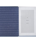 - Blue cover with heat-debossed text design