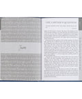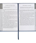 The background of the blue faux leather cover is heat-debossed with quotations from the words Jesus spoke while walking the earth. The title and sub-titles are heat-debossed and foiled in gold.
