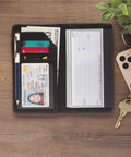 This durable checkbook wallet will protect her checks and keep everything she needs to pay the bills in one place. It has an interior slip pocket for receipts or cash and a built-in elastic pen loop to keep a pen handy. It has a plastic divided to ensure carbon copies do not transfer, three credit card slots, and an I.D. pocket with a window.