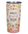 World's Greatest Mom Peach Floral Stainless Steel Travel Tumbler