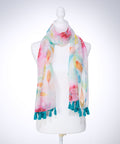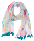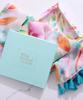Oversized watercolored daisies accented with teal, chartreuse, and orange leaves in this sheer scarf's design make this the perfect eye-catching statement piece for any outfit. The teal tassel trim only adds to the wow factor. The scarf is packaged in a light blue box with a full-color printed interior that matches the scarf's design. The sentiment is presented in a rose gold foiled frame in rose gold-foiled letters on the lid of the gift box—ready to be wrapped for a special occasion.