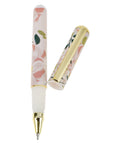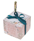 The top of each page has a pink frame and a lovely, feminine bouquet of pink and white flowers in the lower right corner. The note block for women holds 750 tear-off sheets, and it includes a matching floral pen with shiny gold accents nestled in a built-in pen holder. A dark teal grosgrain ribbon ties it all together.